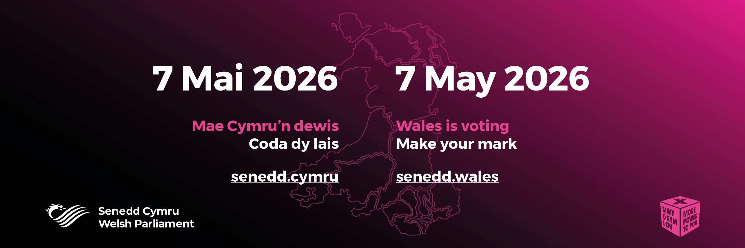 We’ve created a set of downloadable materials you can use to help promote the 2026 Senedd Election. Use these assets in your campaigns, on social media, or in community settings to make sure people know how, when, and where they can take part in the election.