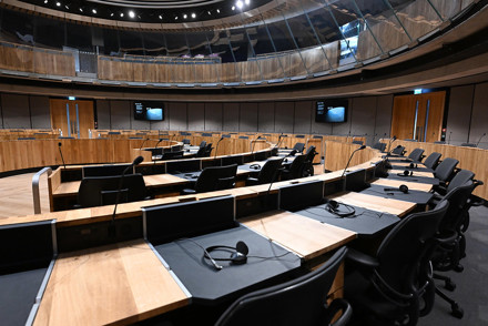 The Siambr has been expanded to accommodate 96 Members using removable back wall sections that were incorporated into the original design two decades ago.