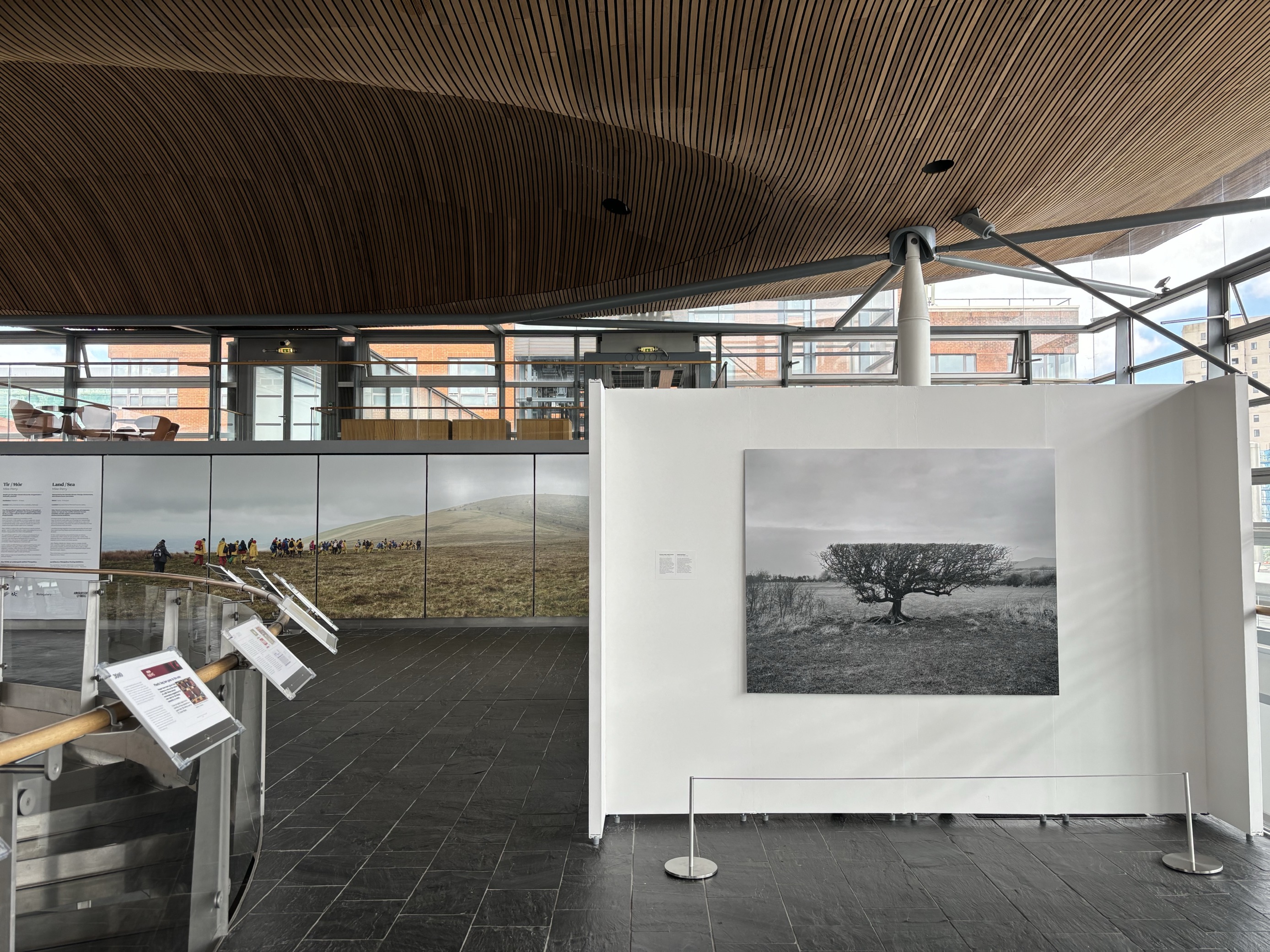 Located directly above the debating chamber, exhibitions in the Senedd Oriel reflect current debates, and act as starting points for conversations about life in Wales, Welsh Democracy, and the work of the Senedd.